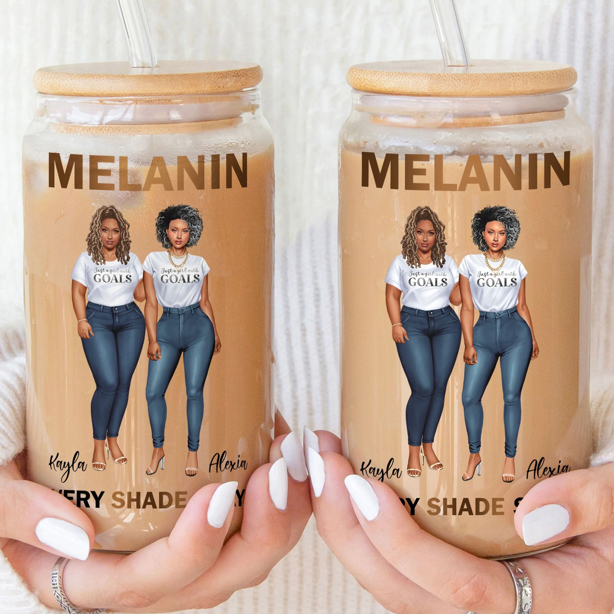 Embrace the power of sisterhood and celebrate the beauty of melanin with our Personalized Clear Glass Can – the perfect gift for the strong, vibrant, and melanin-rich women in your life. Adorned with a stylish design featuring the empowering quote, "Melanin every shade slays," this clear glass can is more than just a vessel for beverages; it's a symbol of pride, strength, and unity.